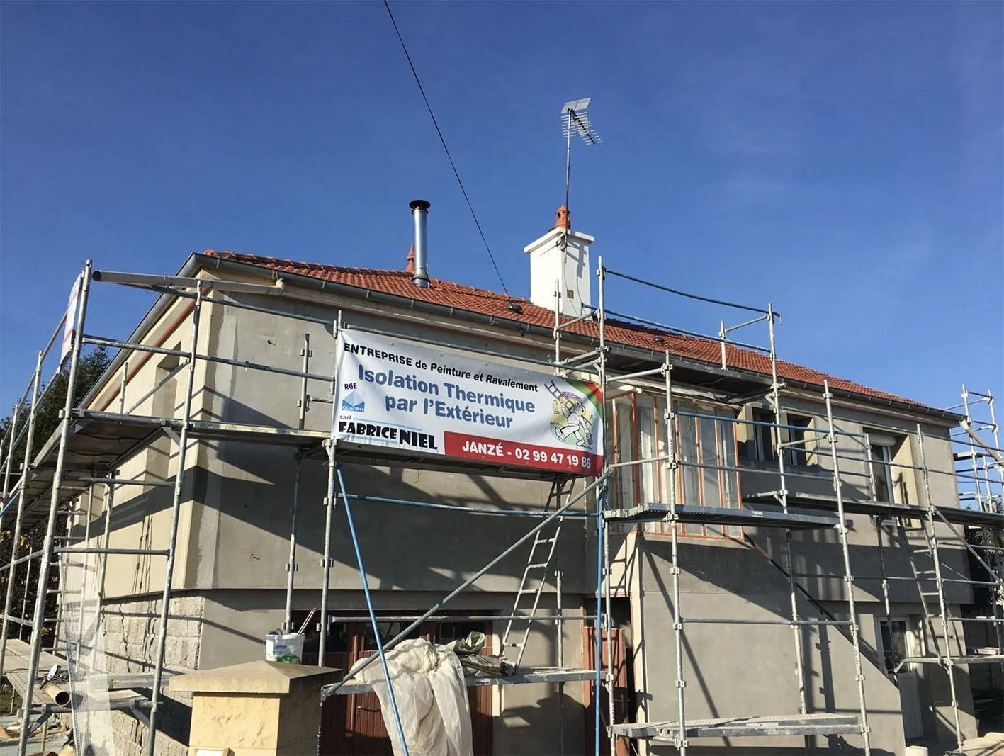 L'entreprise Fabrice NIEL PEINTURE situé à Janzé ille et vilaine effectue avec sérieux et professionnalisme les travaux de ravalement peinture et d'isolation Thermique par l'extérieur (ITE) sur tous types de pavillons individuels.